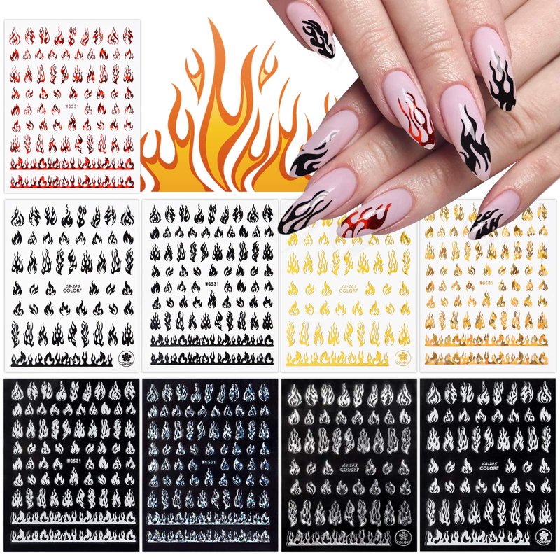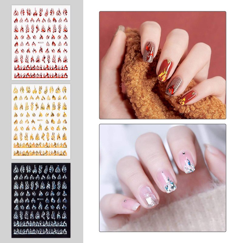 - 【Wide Applications】Great for daily use. Suitable for natural nails and fake nails. 3D fire nail stickers are perfect for decorating your fingernails and toenails. This is the best gift for your wife, girlfriend, mother, friends.