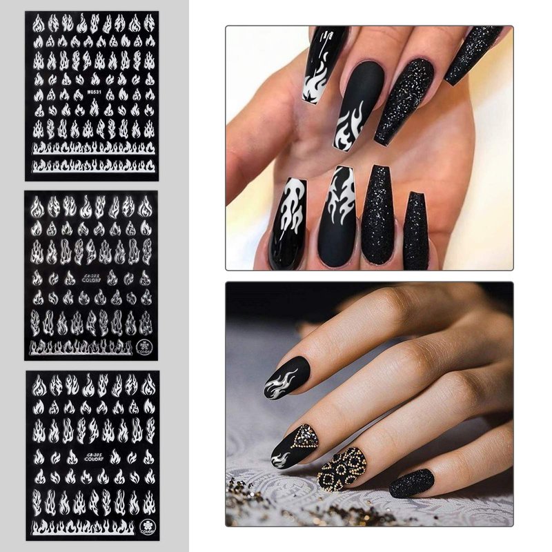 - 【Flame Nail Art Stickers】You will get 9 sheets flame nail stickers, including black, white, gold, silver and red. Our flame nail decals is the latest and chic design, bring you enjoy the passion of flame style.