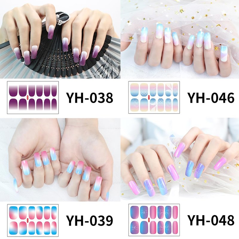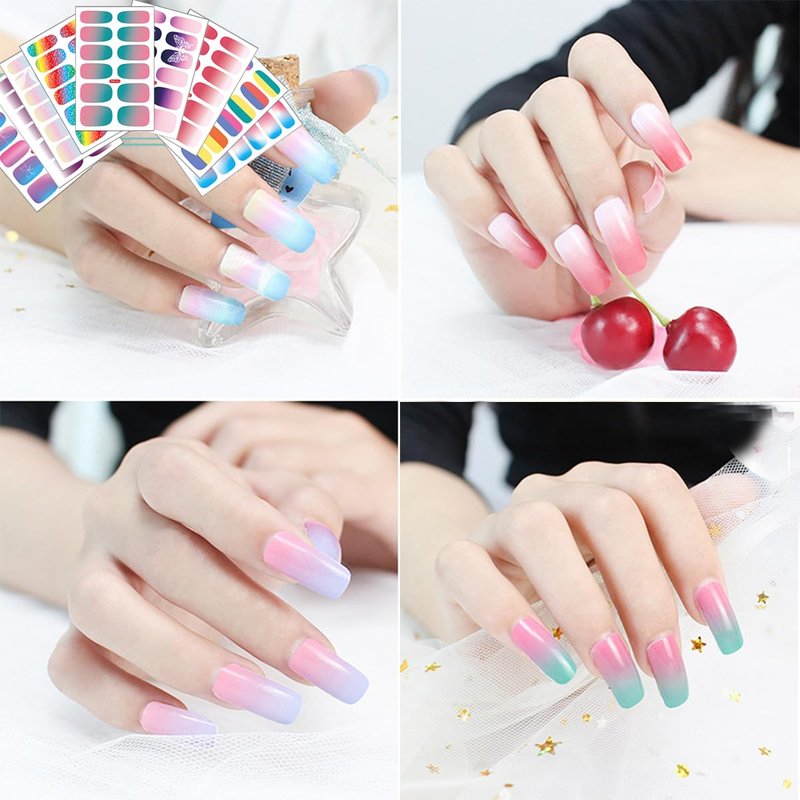 - 💟【Package content】Comes with 9 sheets aurora gradient color full nail stickers in different patterns and sizes,12 pieces for each sheet, 108 pieces in total. Just enjoy nail manicure DIY at home instead of high expense of nail salon.