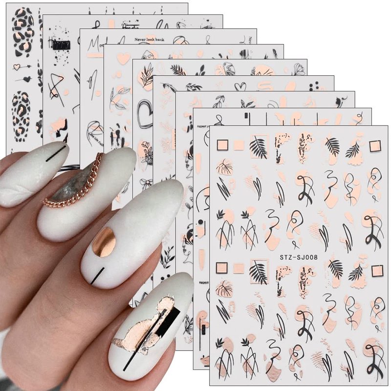 - Package: You will get 9 Sheets gold nail art sticker, vintage graffiti fun leopard print rose gold botanical abstract lines designer nail stickers art decoration meet most DIY design needs, and make your nails more shiny and charming