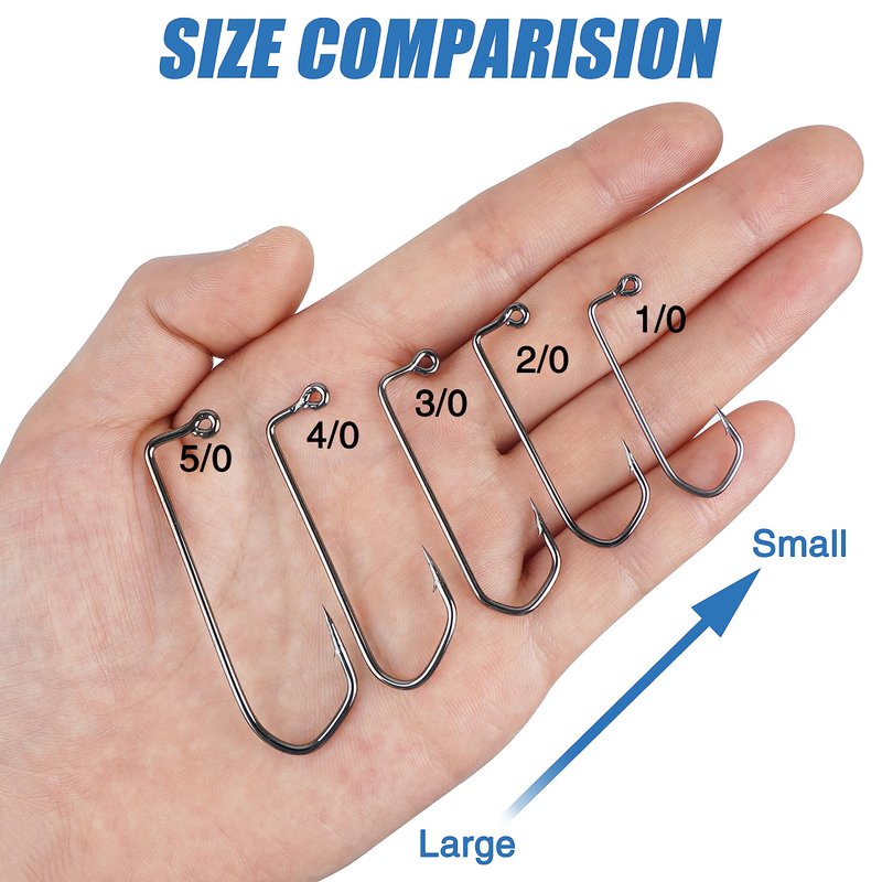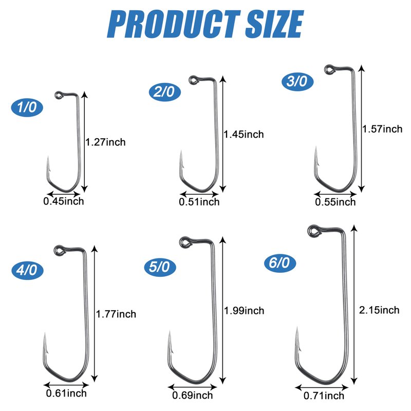 - Quantity: 1/0,2/0,3/0,4/0,5/0,6/0 available. 100pcs fishing jig hooks in a plastic box, easy to carry