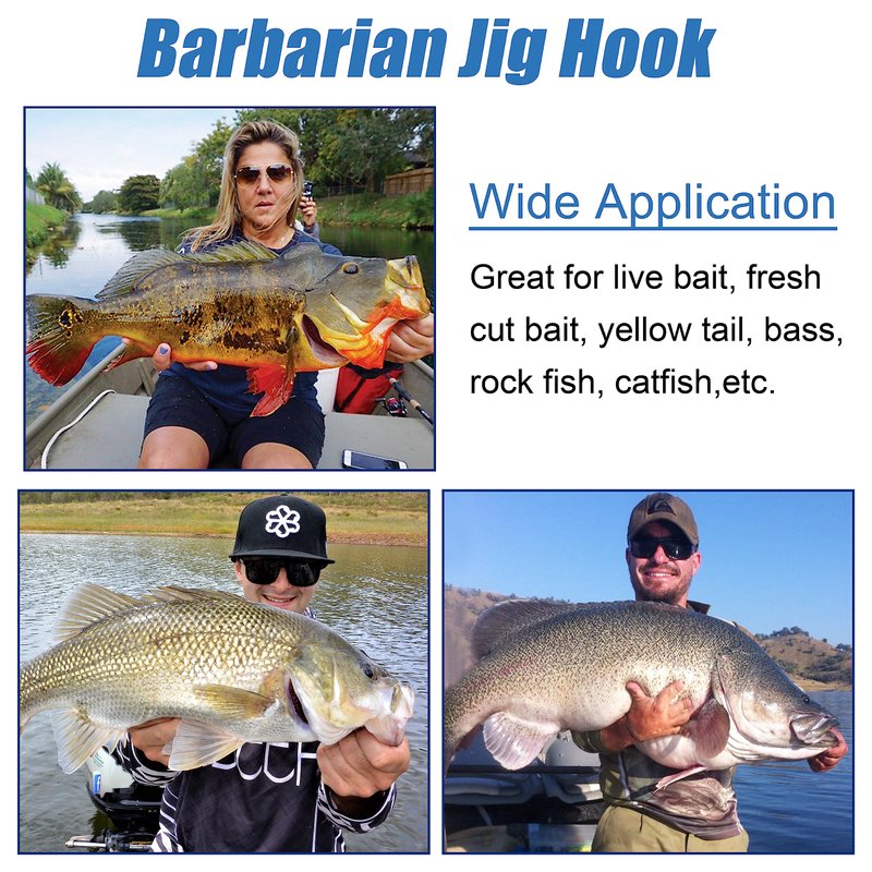 - Barbarian Jig Hook is a great choice for bass fishing or fly fishing anglers, great for live bait, fresh cut bait, yellow tail, bass, rock fish, catfish,etc