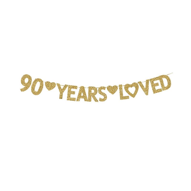 90 Years Loved Banner, Gold Glitter Happy 90th Birthday Party Decorations