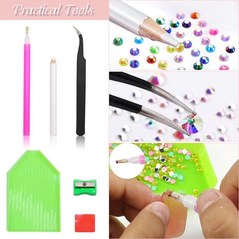 - 💖PACKAGE INCLUDES: 9000 pcs of crystal rhinestones in 15 colors, each color has 600 pcs of 4mm. Along with 1 tweezers, 1 drill pen, 2 wax pencils, 1 triangle crystal tray, 1 green crystal tray, 1 pencil sharpener, 1 pc of clay.