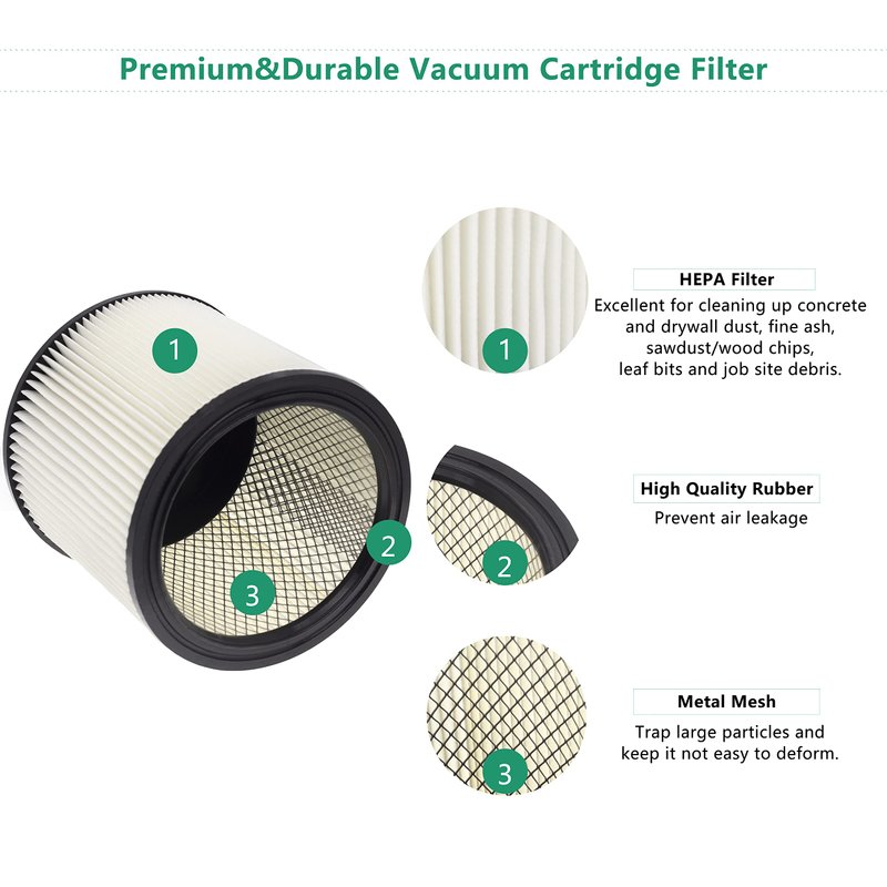 - Comaptible with Shop-Vac 90304 / 90350 / 90333 filters; Fits for Shop Vac most 5 Gallon+ Wet/Dry Vacuum Cleaner.