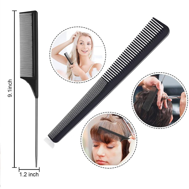- 【2pcs comb for hair sectioning】✅ Made from carbon fiber, these 2pcs combs with metal pick are stable and not easy to break, they are a practical tool for parting, combing, sectioning, coloring, separating, styling your hair, and more.