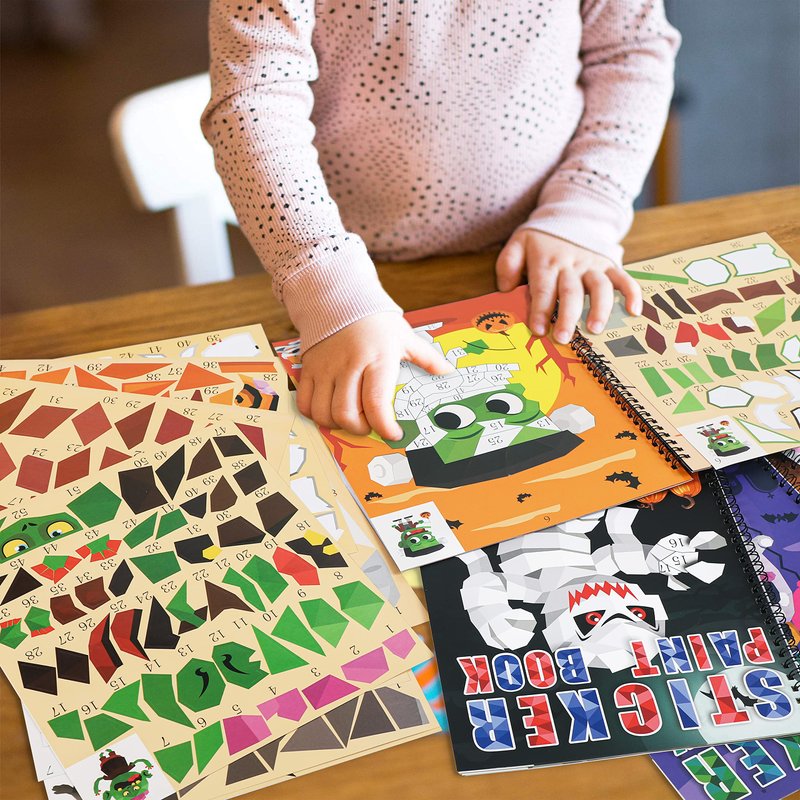 - These sticker books can not only enhance your children’s hand eye coordination,color/number recognition and intellect,but also a good way for you to interact with your kids.They can be a Halloween gift or party favors for children.