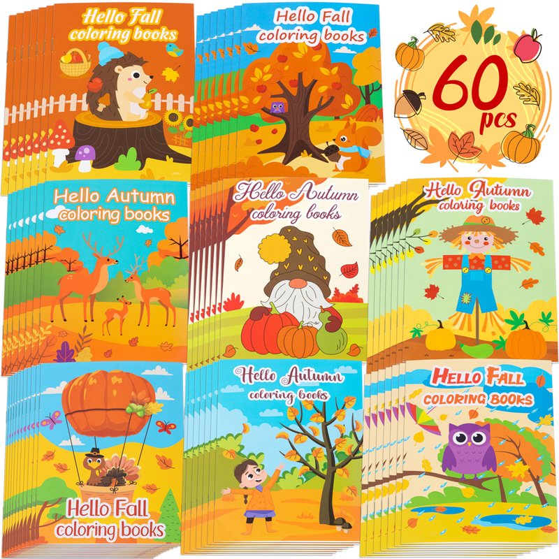 - An assortment of coloring books - There are 60pcs kids fall coloring books in the package. Each book has 6 pages in double-sided printing.