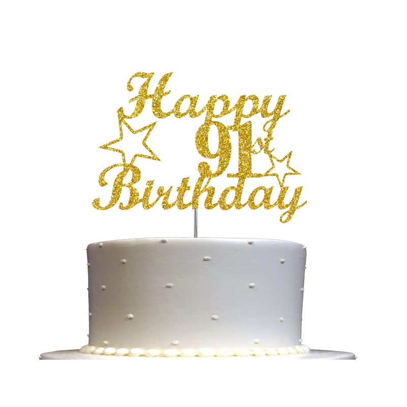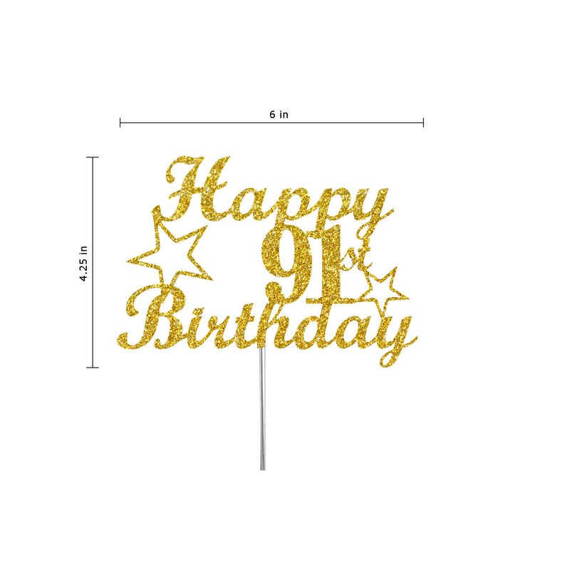 91 Birthday Cake Topper Gold Glitter, Party Decoration Ideas, Premium Quality, Sturdy Doubled Sided Glitter, Acrylic Stick. Made in USA (91st)