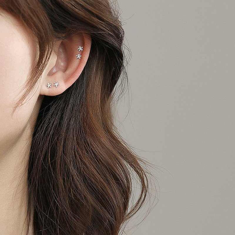 Mini flower stud earrings, small sleeper tragus post earrings.