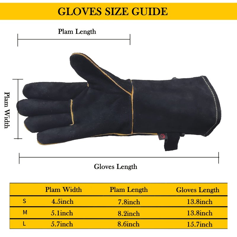 - Material characteristics: The gloves are made of high-quality thick and soft cowhide and insulating cotton; sewn with strong heat-resistant Kevlar thread, heat-resistant, abrasion-resistant, puncture-resistant, and cut-resistant.