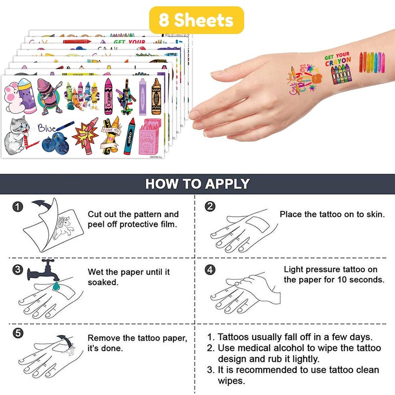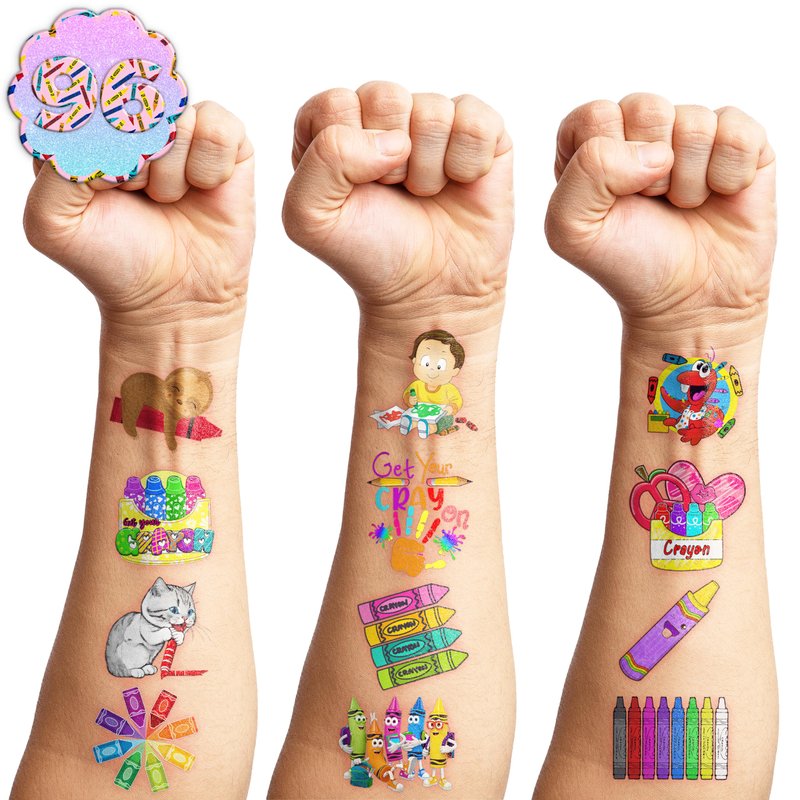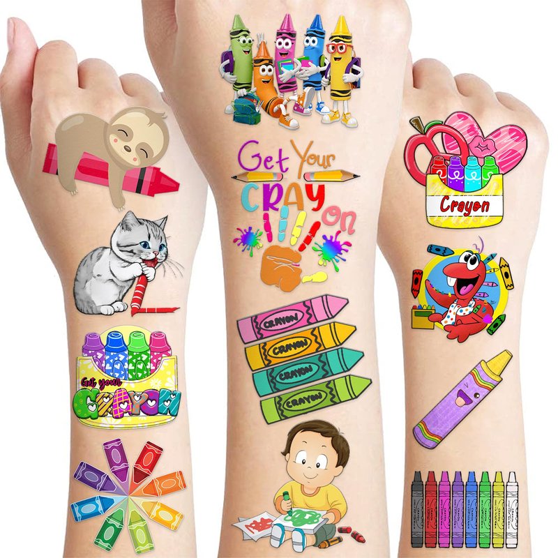 - 🖍️ FUN GIFT IDEAS FOR CRAYON BIRTHDAY PARTY DECORATIONS SUPPLIES: CRAYON TATTOOS perfect for themed party, outdoor parties, birthday parties, school rewards and other party events. CRAYON TATTOOS are also interesting and lovely gifts for your children. Complement your unique collection with a crayon tattoo!