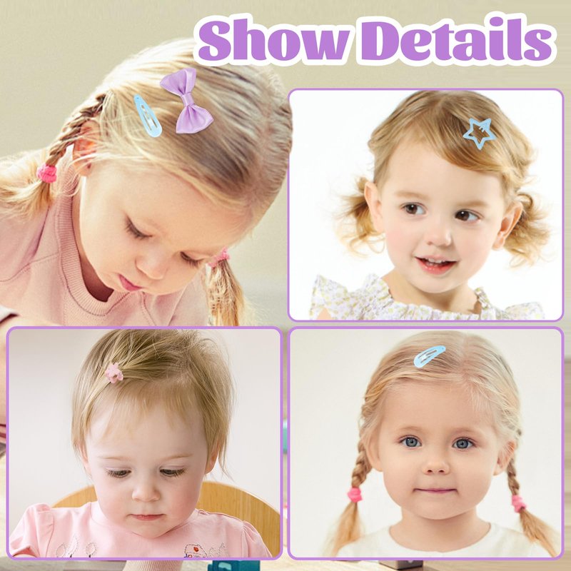 - 【Special Set】 Colorful Hair Accessories Set Specially Made for Children. They cover different styles and combinations, enough quantity and bright colors will make your child love it. The hair ties in different colors can DIY more charming hairstyle and match different outfits and hairstyles on different occasions.