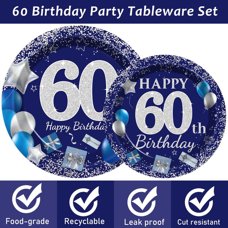 - Party table settings:60th birthday party plates kit can serve 24 guests, and enough quantity for celebrating birthday. The birthday party decoration kit will make your table settings look fantastic.