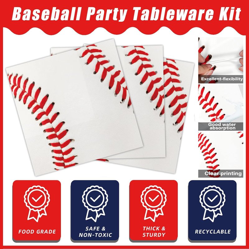 - Baseball birthday party supplies set suitable for any occasion! They can fit well with your other baseball party decorations such as baseball cake topper, baseball party tablecloth, baseball party banner, baseball party bags, baseball party backdrops.