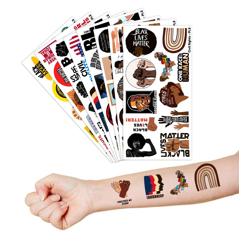- Perfect Civil Rights Black Lives Matter Day BLM African American Black History Month Birthday Decorations: All the temporary tattoos are design with many themed. Fits any smooth part: face, hands, arms, shoulders, back, legs water bottle, cup,mug and other stuff and so on. Great fun for party favors, birthday gift, clubs, festivals or party supplies,etc. and can be used by children, kids, girls, boys, women, men.