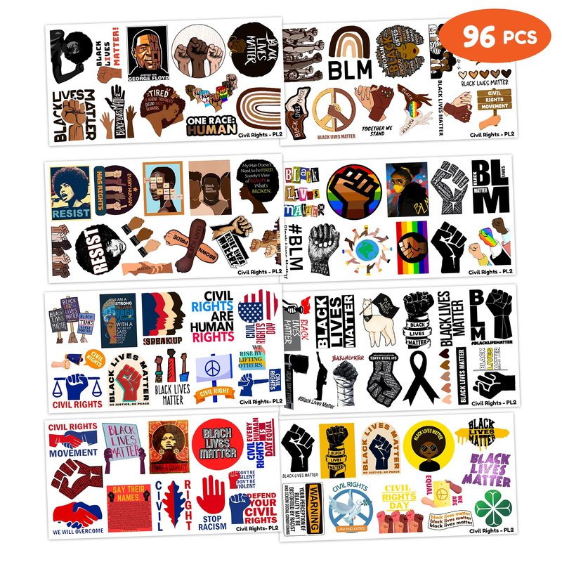 - Cute Civil Rights Black Lives Matter Day Black History Month Party Supplies: 8 sheets Civil Rights Black Lives Matter Day History Month cartoon themed temporary tattoos stickers, features an assortment of cute themed characters, each sheet measures 6.1 x 3.1 inch , all kinds of designs and colors will bring more fun to your party, one size fit all adult and kids.
