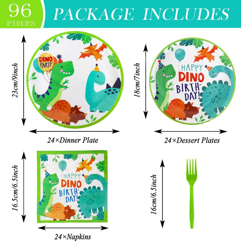 96 Pcs Dinosaur Party Supplies, Dinosaur Theme Birthday Party Decoration Includes Plates Napkins Forks, Dino Tableware Set for Boys Kids Birthday, Serves 24 Guests