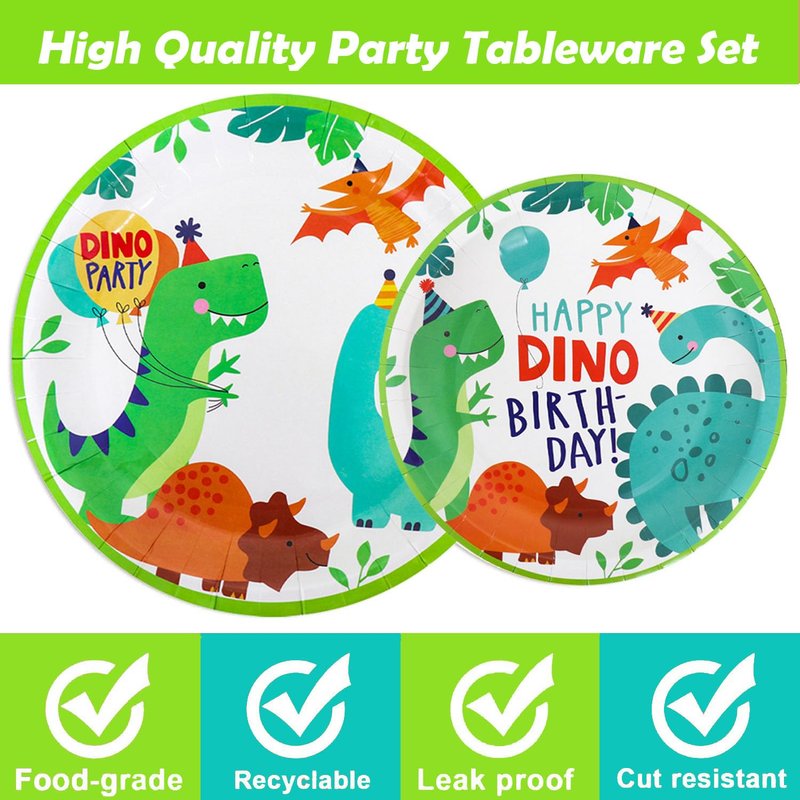 - 【Enjoy the Party】: Impress your guests by hosting a memorable dinosaur-themed event. Our disposable tableware and Dino T-Rex birthday party decorations make post-party clean-up effortless, allowing you to spend more quality time with family or friends.