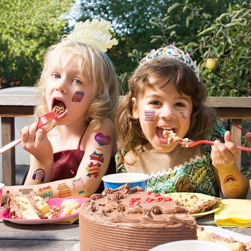 - Perfect Funny Reading Book Booklish Nerd Inspirational Quotes Birthday Decorations: All the temporary tattoos are design with many themed. Fits any smooth part: face, hands, arms, shoulders, back, legs water bottle, cup,mug and other stuff and so on. Great fun for party favors, birthday gift, clubs, festivals or party supplies,etc. and can be used by children, kids, girls, boys, women, men.