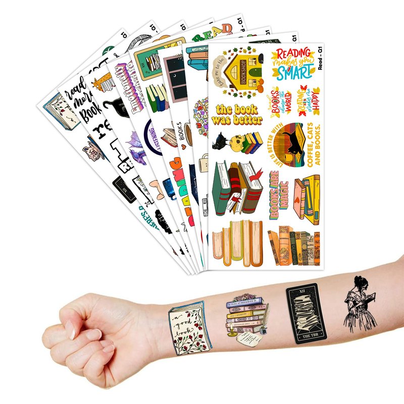 - Cute Funny Reading Book Booklish Nerd Inspirational Quotes Party Supplies: 8 sheets Funny Reading Book Booklish Nerd Inspirational Quotes theme temporary tattoos stickers, features an assortment of cute themed characters, each sheet measures 6.1 x 3.1 inch , all kinds of designs and colors will bring more fun to your party, one size fit all adult and kids.
