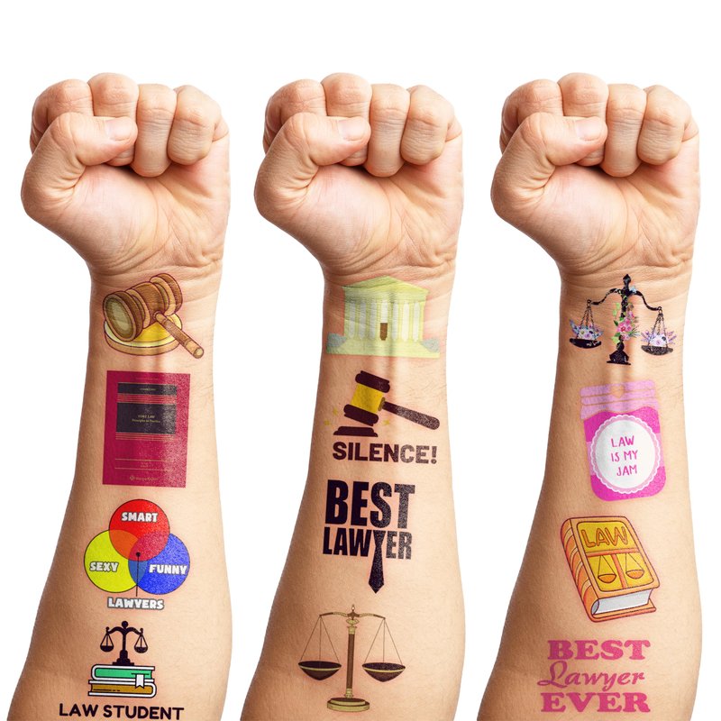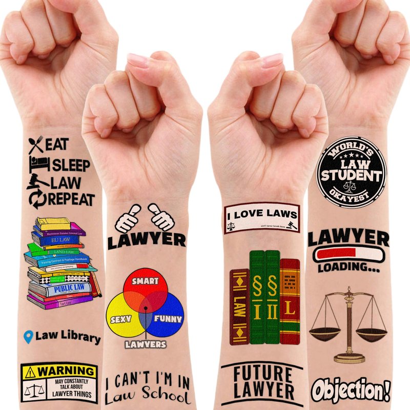 (96 PCS) Future Best Lawyer Law School Justice Temporary Tattoos Birthday Themed Party Supplies Decorations Favors Cute Funny Stickers Tattoo Gifts for Student Kids Girls Boys Women Decor Class Reward