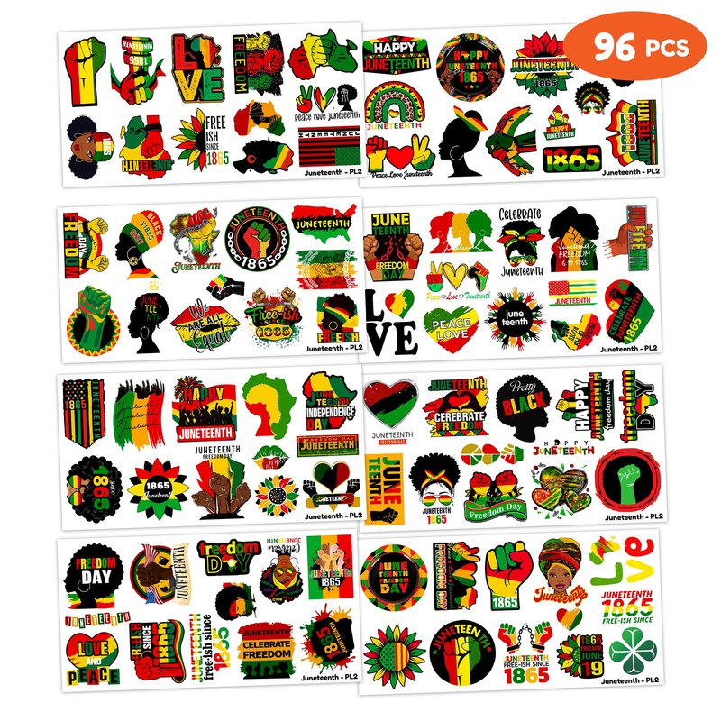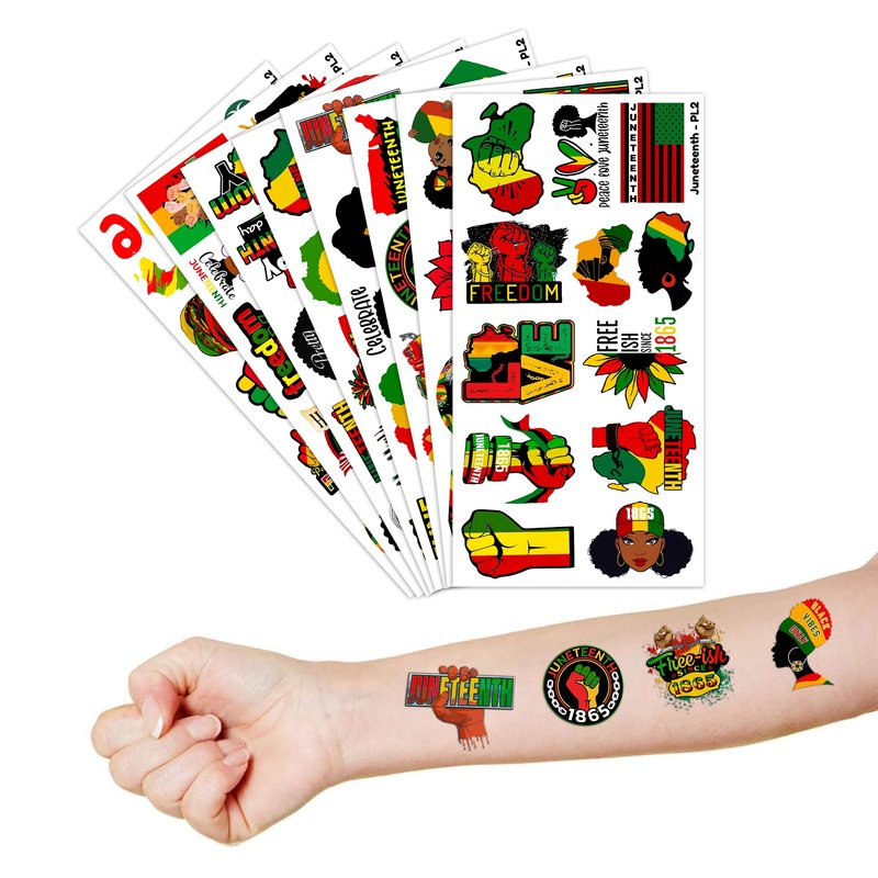 - Cute And Funny Happy Juneteenth Freedom Day Themed Tattoos: African Americans Independence Temporary tattoos Stickers, features an assortment of themed characters, colors are bright, and designs are adorable, use them as party favors and your kids will love. Perfect for themed party, birthday activities, school reward and other party events. They will be your kids' favorite small gifts.