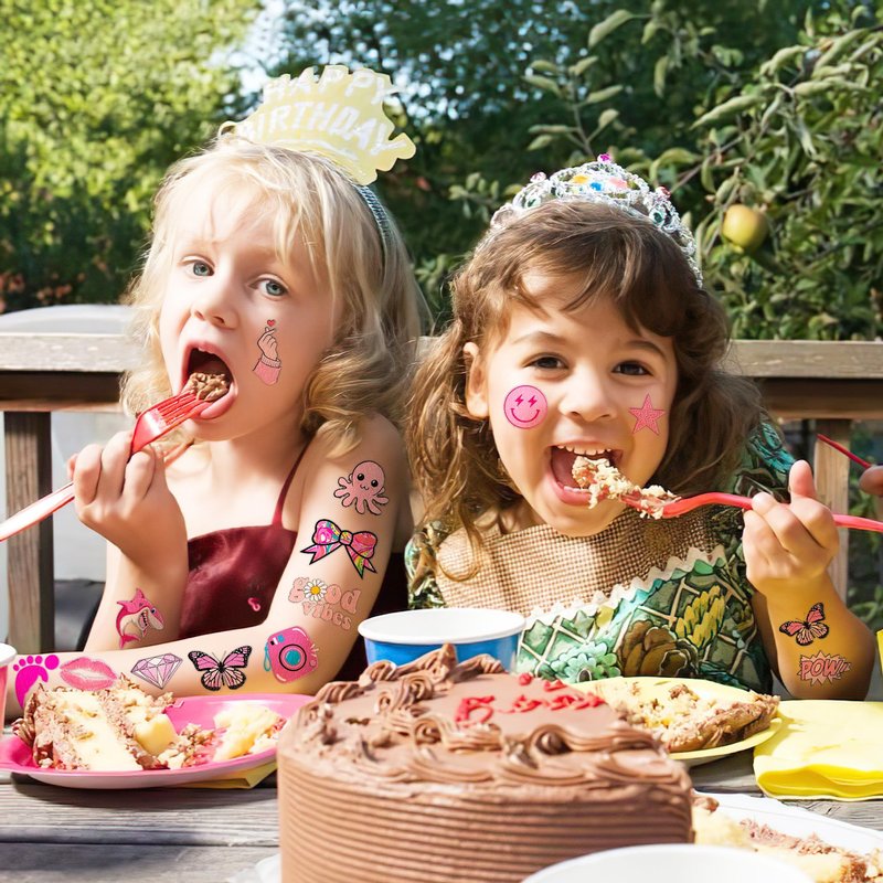 - Various Tattoo Set: Our party favors are based on children's happiness both in appearance and inwardness. Use our party favors can bring joy to your baby, birthday gifts, Christmas sock stuff, family party prize, treasure boxes, Carnival prizes, Classroom rewards, etc. Cute and lively temporary tattoo's element can be used for laptops, backpacks, desks, suitcases, books, water cups and other things you can see everywhere to bring visual enjoyment.