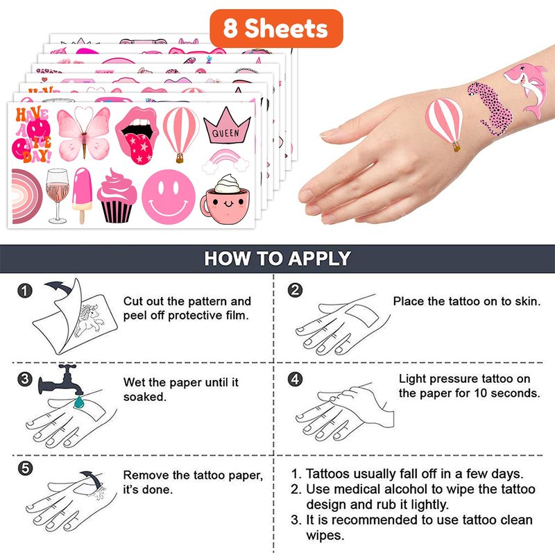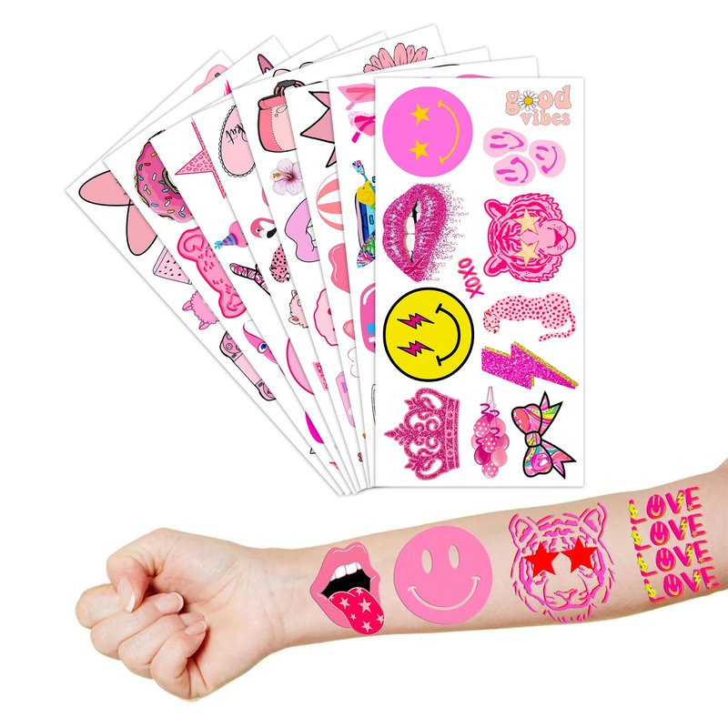 - The Perfect Cute Pink Preppy Bachelorette Princess Girl Pastel Theme Party Gift: 8 Sheets Pink Preppy Bachelorette Princess tattoos stickers, each sheet measures 6.1 * 3.1 inch , one size fit all adult and kids. One of the most popular party themes for children, make the best party gifts for your children & Carnival gifts, help your children become small heroes at the party! Bring nonstop joy to the whole party! Make your kids receive full of expectation and exploration in every festival.