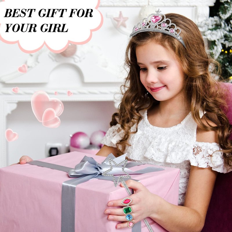 - Wide Uses: you can use this cute crown tiara, play jewelry rings and silver wands to dress up your little girl as a princess, they are also beautiful costume decorations on little girls' birthday parties, dress up parties, Christmas parties, and stage performances, princess themed parties, festivals, carnivals, school drama, also can be applied as nice presents and photographic props