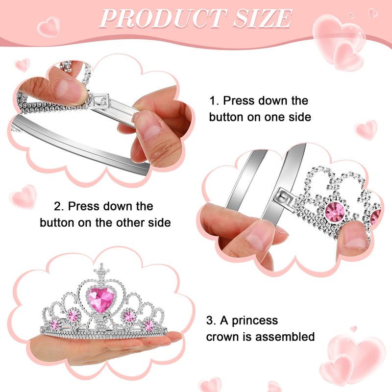 - Package Includes: you will get 24 pink heart stone princess party tiara crowns, 24 silver sparkly star wands, 48 assorted color rhinestone rings, the quantity is enough to meet the decorative needs of your little girls, and help to satisfy their dreams of pretending to be a princess