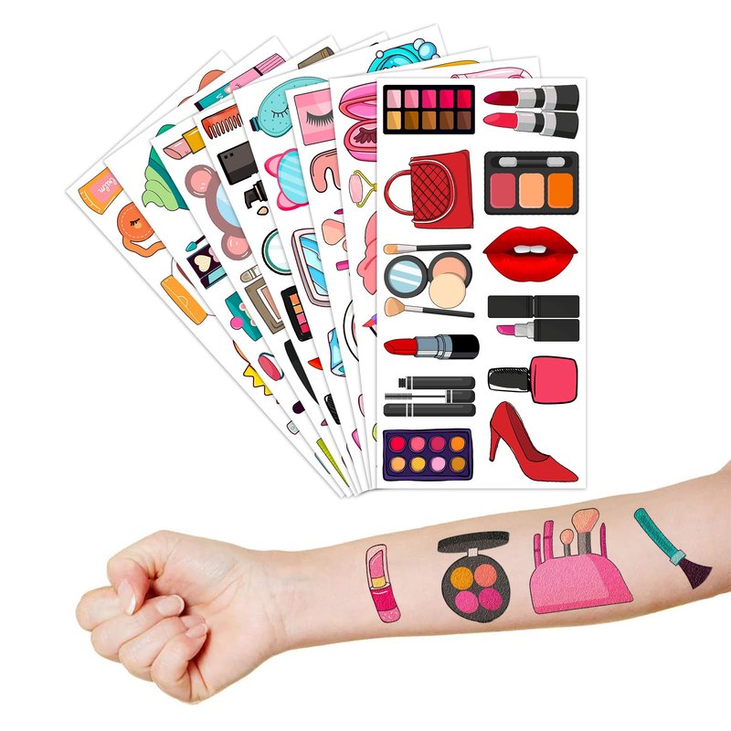 - Pattern rich: Spa Makeup Beauty Cosmetic Nail Temporary Tattoo for Kids include 8 Sheets 96 PCS, the size of each sheet is 6.1 * 3.1 inches. Having a variety of characteristics, shapes and vibrant colors can stimulate your children's imaginations and bring a creative atmosphere to your Spa Makeup Beauty Cosmetic Nail Theme Party.
