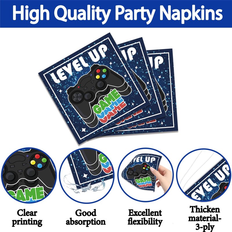 - Video Game Birthday Decorations: Our video game themed tableware set contains all the game elements you want, including level up, game on, game controllers etc. You can apply them to anyone video game party you want to hold for your children or yourself.
