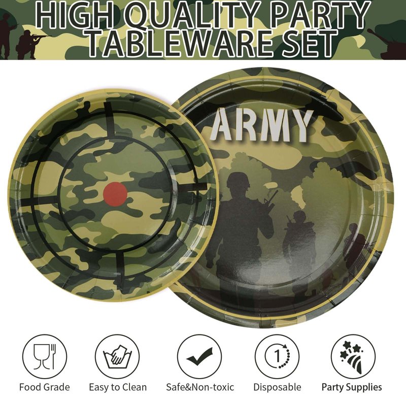 - 【Army Birthday Party Decorations】Army party supplies set included 24pcs 9'' army party plates, 24pcs 7'' army plates, 24pcs paper napkins, 24pcs disposable forks, providing a dependable surface for serving delicious snacks and treats.