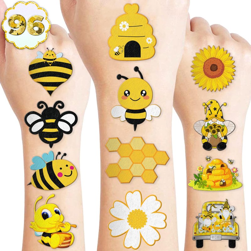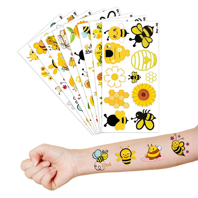 - The Perfect Cute And Funny Happy Bumble Bee Day One Honey Bees Theme Party Gift: 8 Sheets Happy Bumble Bee Day One Honey Bees tattoos stickers, each sheet measures 6.1 * 3.1 inch , one size fit all adult and kids. One of the most popular party themes for children, make the best party gifts for your children & Carnival gifts, help your children become small heroes at the party! Bring nonstop joy to the whole party! Make your kids receive full of expectation and exploration in every festival.