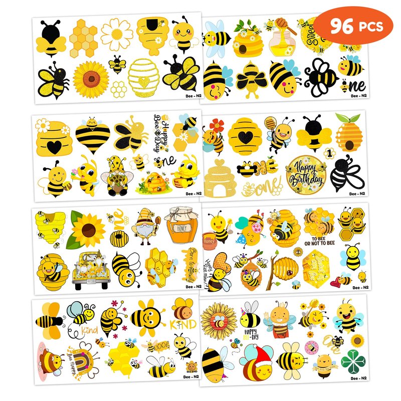 96PCS Happy Bee Day One Temporary Tattoos Honey Bees First Theme Birthday Party Decorations Favors Supplies Decor Cute Bumble Tattoo Stickers Gifts for Boys Girls Kids School Prizes Carnival Christmas