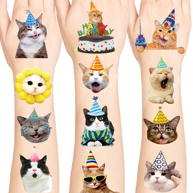 96PCS Individually Temporary Tattoos Removable Tattoos Waterproof Stickers for Birthday Decorations Party Supplies Party Favors School Rewards Gifts Ideas (Cat)