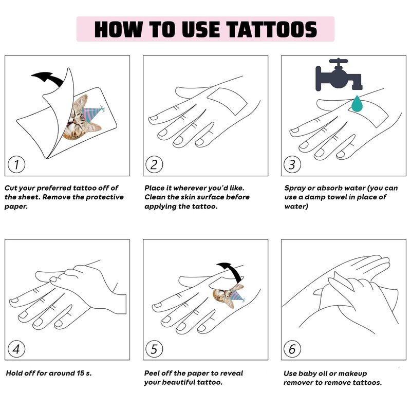 - Every tattoo set includes 96 pieces total, covering 4 sheets. Using them for classroom supplies, classroom prizes, birthday parties, birthday gifts, and other important occasions.
