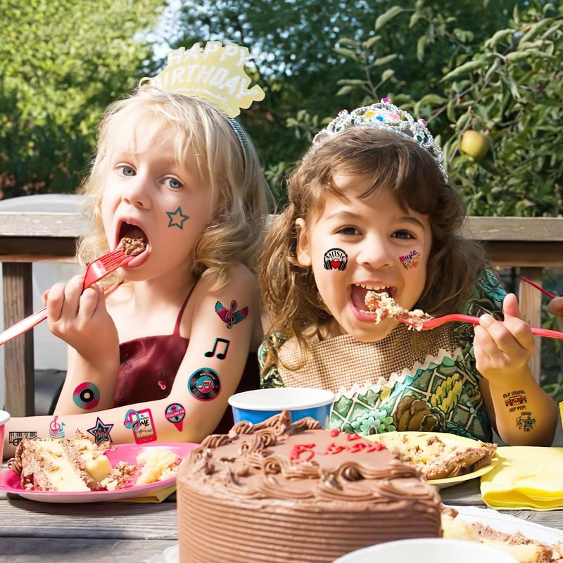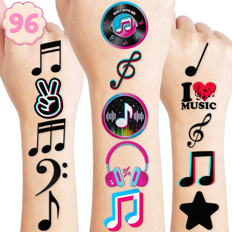 - Perfect Music Notes Note Musical Motivational Inspirational Birthday Decorations: All the temporary tattoos are design with many themed. Fits any smooth part: face, hands, arms, shoulders, back, legs water bottle, cup,mug and other stuff and so on. Great fun for party favors, birthday gift, clubs, festivals or party supplies,etc. and can be used by children, kids, girls, boys, women, men.