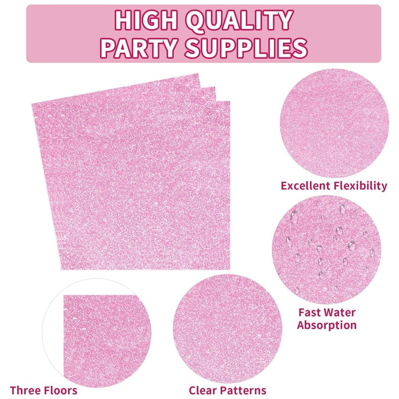 - 【Easy to Clean Up】This pink disposable tableware sets can simply be packed up and thrown away after the glitter party, saving you the trouble of washing the dishes and minimizing your cleaning burden, so that you can have more time and energy to enjoy the party and easily create unforgettable pink memories