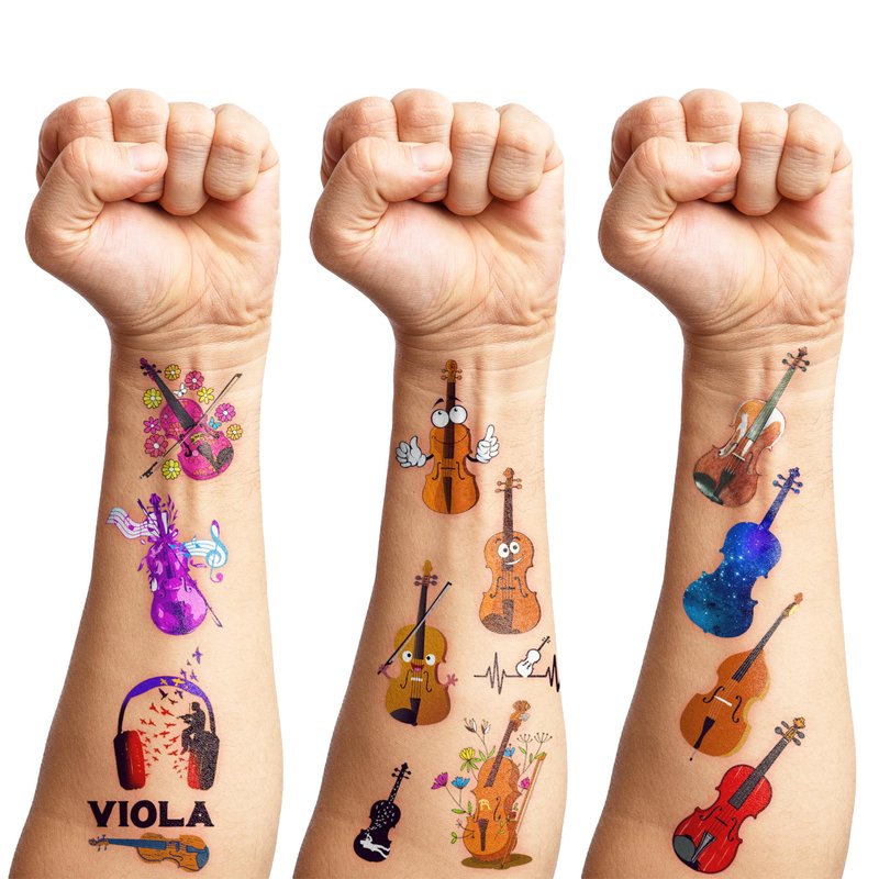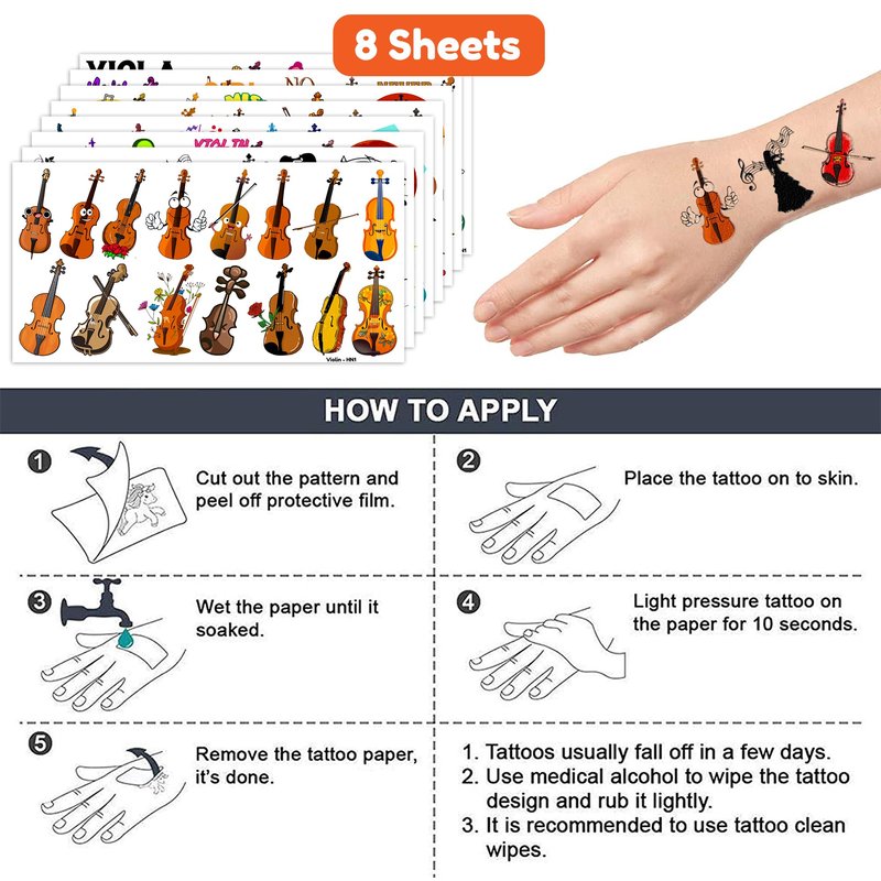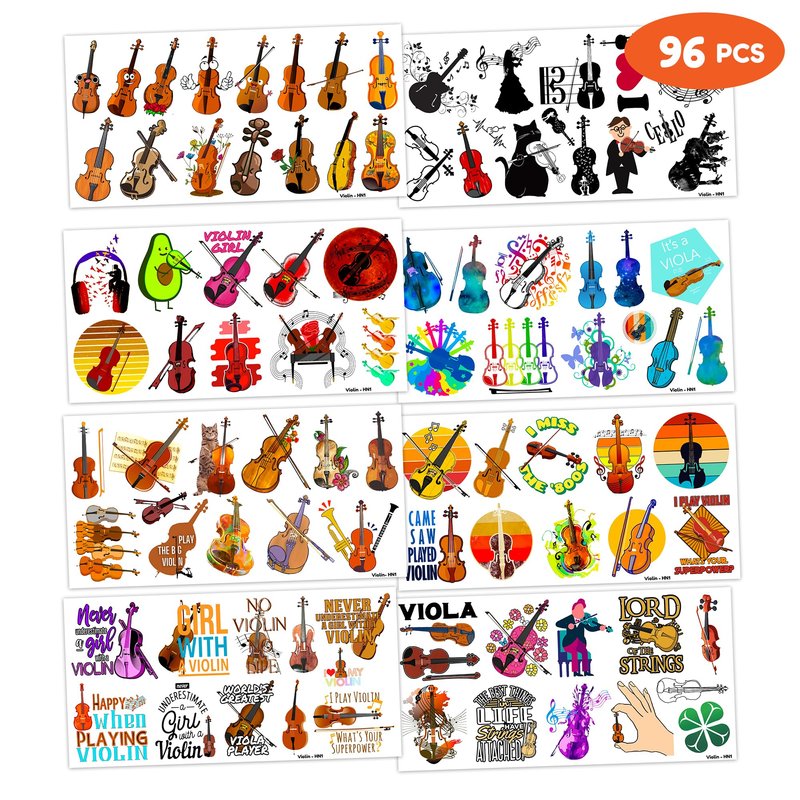 - Pattern rich: Cute Violin Music Musical Instrument Orchestral Violinist Temporary Tattoos for Kids include 8 Sheets 96 PCS, the size of each sheet is 6.1 * 3.1 inches. Having a variety of characteristics, shapes and vibrant colors can stimulate your children's imaginations and bring a creative atmosphere to your Violin Party.