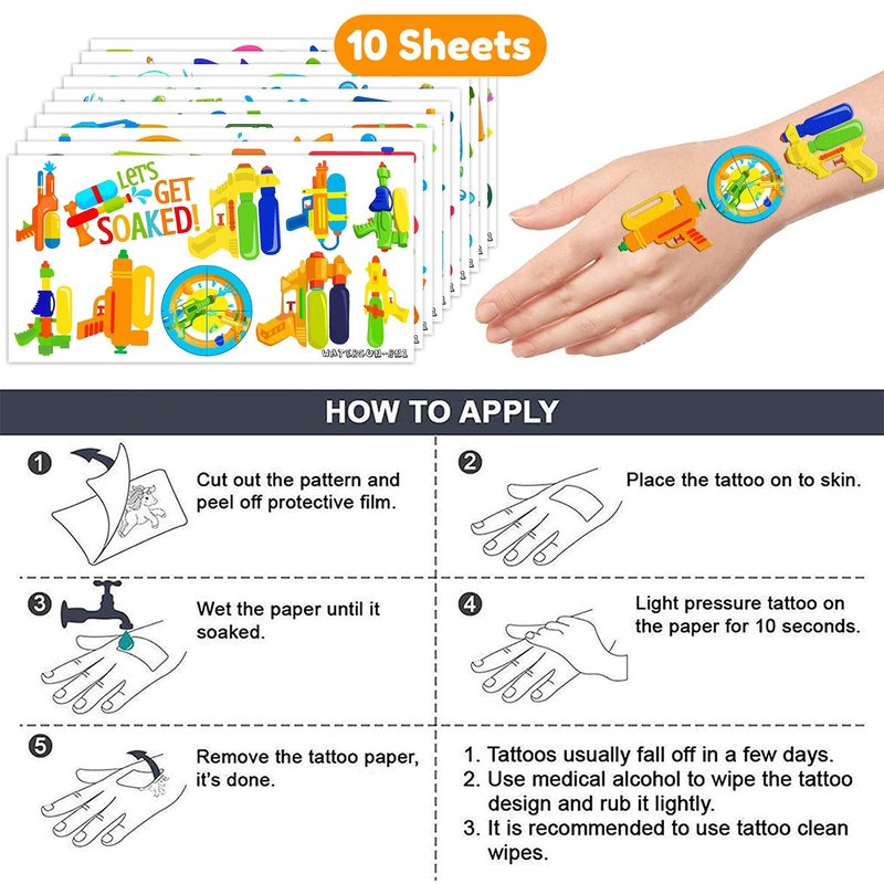 - 💦UNIQUE DESIGNS: WATER GUN tattoos set is perfect for summertime playtime with engaging scenarios that can be played out with water balloons and water pistols, ensuring memories that last forever.