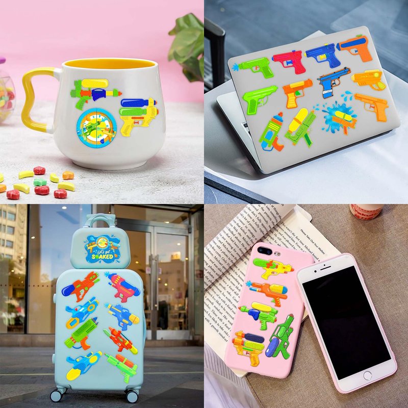 🔫PACKAGE INCLUDES: The package includes 10 sheets, each with 96 PCS and measures 6.1 x 3.1 inches, as well as a full set of WATER GUN tattoos.This is a great summer-themed gift for kids or adults to enjoy by the pool on a hot day. 💦UNIQUE DESIGNS: WATER GUN tattoos set is perfect for summertime playtime with engaging scenarios that can be played out with water balloons and water pistols, ensuring memories that last forever. 🔔APPLICABLE OCCASIONS: Good materials for beach time, pool birthday parties, games with water balloons and WATER GUNS, summer splash fun, and so on. ♻️SAFE AND HIGH QUALITY: We create temporary tattoos using high-quality, eco-friendly paper that is safe to use. Our tattoos are visually appealing and made with utmost care for our clients' safety. 📌HOW TO APPLY: Firstly, cut out the pattern and peel off the protective film. Secondly, place the tattoo on to skin or objects like a water bottle, purse, laptop, phone case, etc. Next, wet the paper until it soaked. Then, light pressure tattoo on the paper for 10 seconds. Finally, remove the tattoo paper once it's done. Go ahead and enjoy your stunning new look! And You'll have a gorgeous, velvety tattoo that can be easily removed with baby oil, soap, or water. 💌THINGS TO NOTES: Do not apply around eyes, lips,s or sensitive skin areas. Under no circumstances should anyone under the age of four use this without adult supervision. Our team is always here to help and ensure you have a positive shopping experience. Please do not hesitate to contact us for assistance