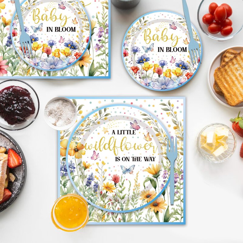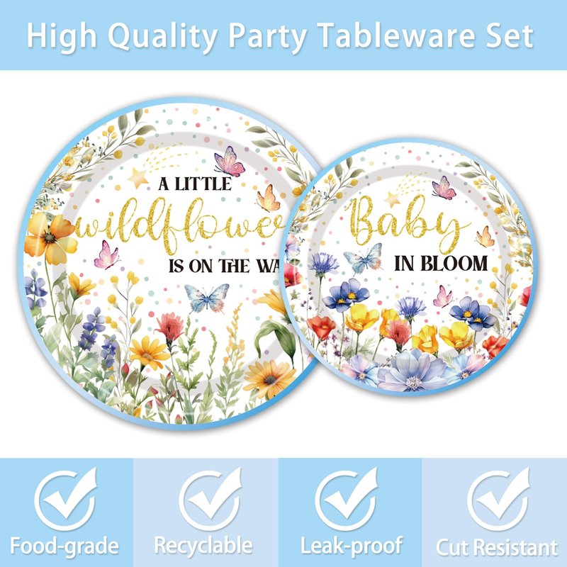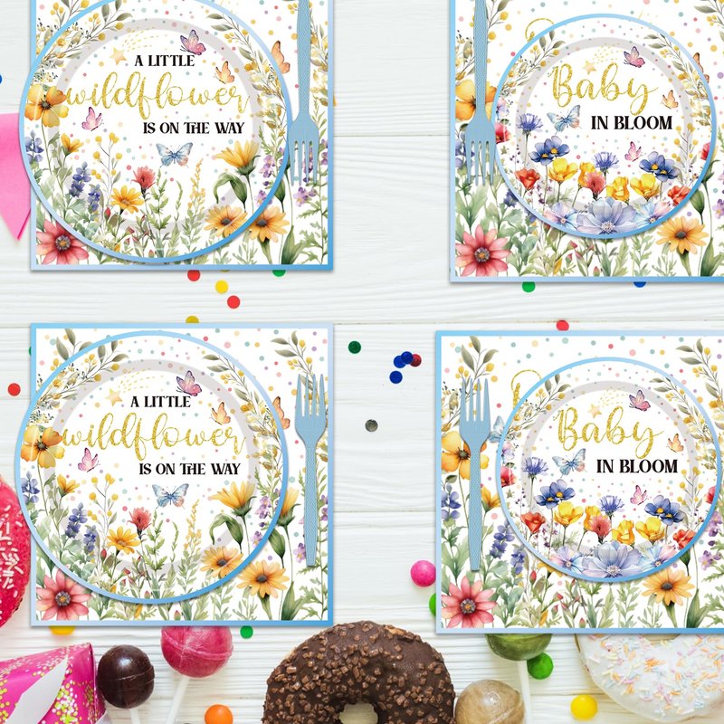 - Food-Grade Safety: Wildflower baby shower plates and napkins set are made from food-grade materials, ensuring safe use. The plates are sturdy, napkins are soft and absorbent, and the forks are resilient, allowing you to enjoy your meal without worry