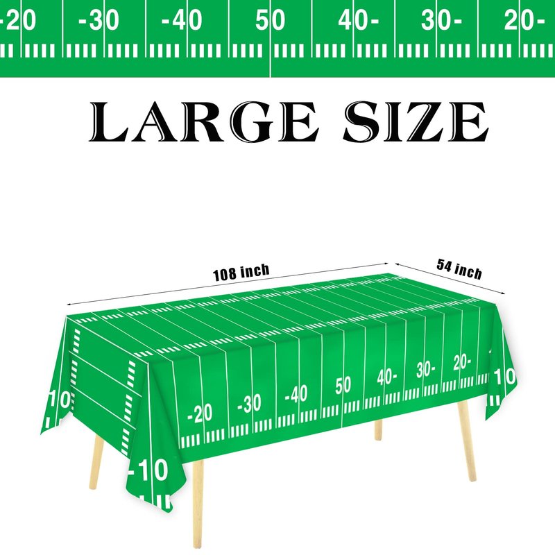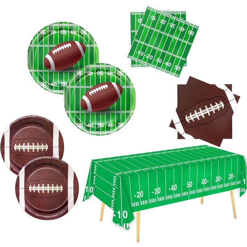 - 【Package Contents】: This football party theme set comes with including for 24 guests: Including 24 7" dessert plate, 24 9" dinner plate, 48 6.5"paper napkins,1 54" x 108"table cover, 97 pcs in total. Save more work than select these items individually.