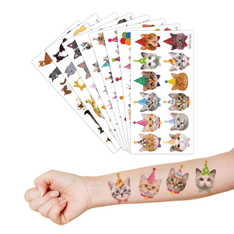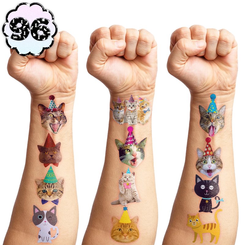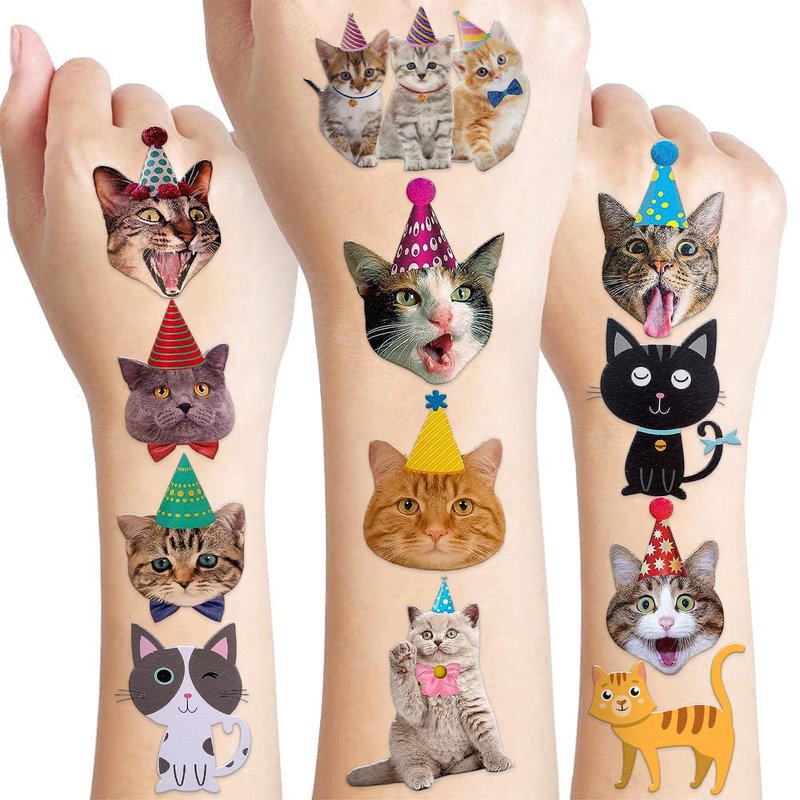 - 🐈 FUN GIFT IDEAS FOR CAT BIRTHDAY PARTY DECORATIONS SUPPLIES: CAT TATTOOS perfect for themed party, outdoor parties, birthday parties, school rewards and other party events. CAT TATTOOS are also interesting and lovely gifts for your children. Complement your unique collection with a cat tattoo!