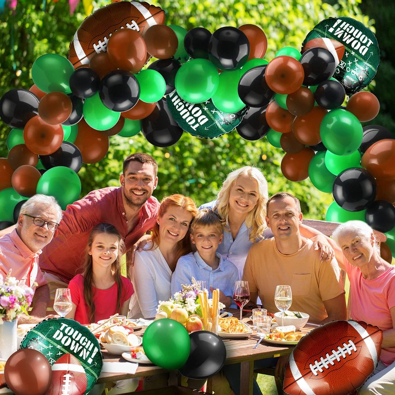 - Football party supplies: you will get 6 pieces football field foil balloons and 90 pieces latex balloons and 1 roll long balloon strip, satisfy your tailgate game day football theme supplies birthday party decorations