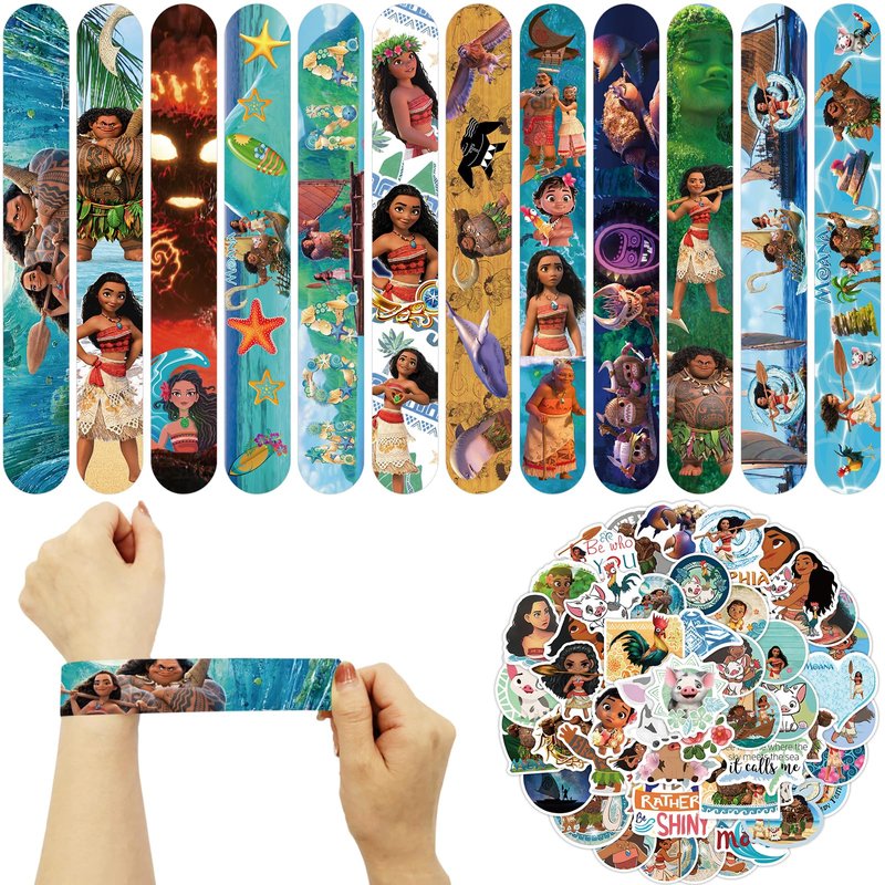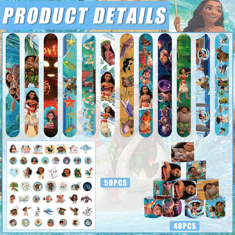 - What You Get: Package includes 48pcs Moana slap bracelets and 50pcs stickers, perfect party supplies for kids birthday party, and kids will love it.