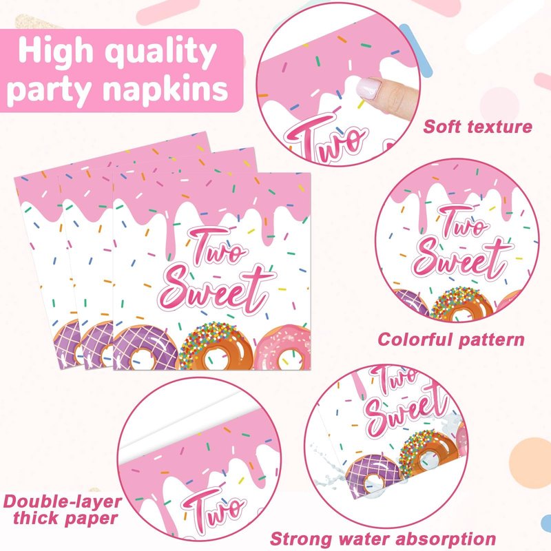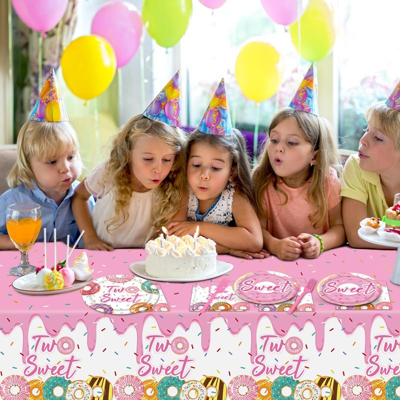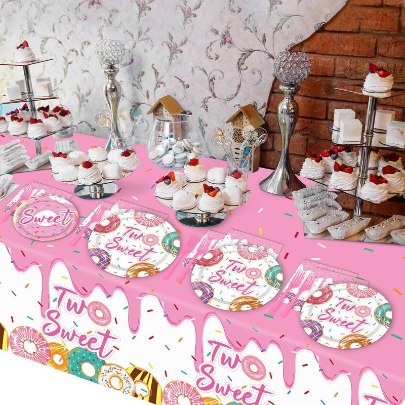 - Premium material: Our two sweet donut tableware are made of quality paper and well-printed, which is safe and reliable to use. The two sweet donut party tablecloth is made of plastic, waterproof and splash-proof, not easy to wrinkle, you can feel its smooth and comfortable. Those are wonderful complements to a two sweet donut birthday themed party.