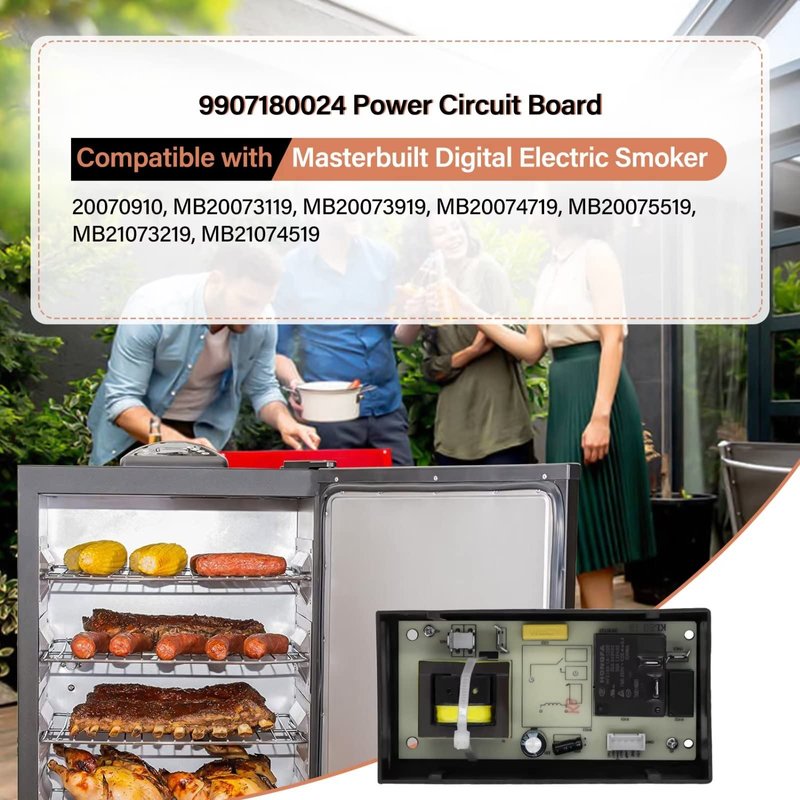 - 【COMPATIBLE】- This 9907180024 Power Circuit Board compatible with Masterbuilt Digital Electric Smoker: 20070910, MB20073119, MB20073919, MB20074719, MB20075519, MB21073219, MB21074519